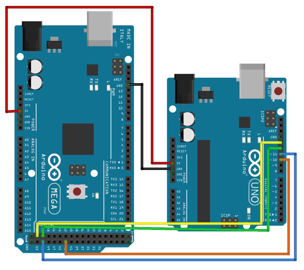 이번에도 I2C와 마찬가지로 두 개의 보드를 연결해볼건데 Master 역할에는 메가보드 Slave에는 우노 보드를 사용할 것이다.
